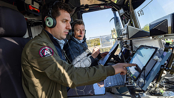 Server, die mit einer Kommandozentrale an Bord eines Bodenfahrzeugs verbunden waren. Die Bilder wurden analysiert, geolokalisiert und mit Daten – darunter Satellitenbilder – zusammengeführt, wobei das Gelände, die von einer Drohne gemessene Windstärke und -richtung sowie die Position der Feuerwehrleute am Boden berücksichtigt wurden. Datenverarbeitungssysteme mit KI erzeugten einen umfassenden Überblick über die taktische Lage am Boden und in der Luft und ermöglichten die Übermittlung von Flugwegen und Wasserabwurfpunkten an den mit einem Präzisions-Wasserabwurf-Assistenzsystem ausgestatteten Hubschrauber sowie an die ATR72, die einen Löschflugzeug simulierte.