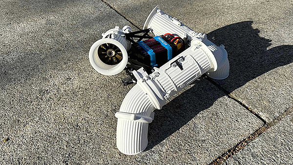 Die Propeller von Drohnen bergen ein Risiko: Menschen können sich an den rotierenden Blättern verletzen und bei Kollisionen können Objekte oder die Drohne selbst beschädigt werden. Das elfköpfige Team des Fokus-Projekts Avero hat sich deshalb zum Ziel gesetzt, die Propeller ins Innere der Drohne zu verlagern: Die Propeller befinden sich in Röhren, der erzeugte Luftstrom wird über schwenkbare Düsen gesteuert.