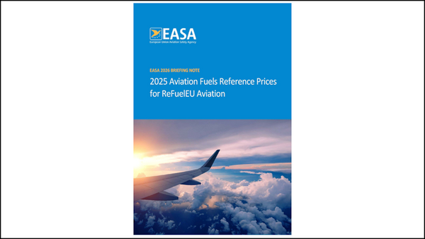 Die Europäische Agentur für Flugsicherheit EASA hat Referenzpreise für nachhaltige und herkömmliche Flugkraftstoffe für 2025 veröffentlicht. Diese Preise dienen der EU als Grundlage für Strafen und Förderungen im Rahmen von ReFuelEU und dem Emissionshandel.