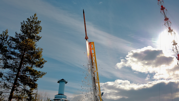 Start der 7,8 Meter langen N2 ORTH-Rakete im April 2023 vom Weltraumbahnhof Esrange in Kiruna, Schweden, Foto: HyEnd