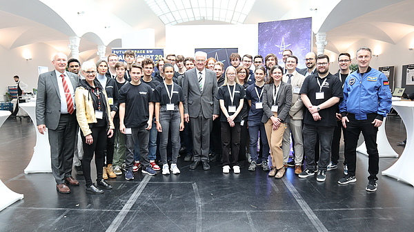Die DGLR sorgte als Mitveranstalter der Raumfahrtkonferenz für einen reibungslosen Ablauf der Veranstaltung, Organisation der Panels und ermöglicht es den DGLR-Nachwuchsgruppen, an der Veranstaltung teilzunehmen. In diesem Jahr waren KSat e. V. von der Universität Stuttgart und die WARR von der TU München mit dabei. Außerdem konnte die Jugendinitiative Aerospacelab mit einigen Schülerinnen und Schülern vor Ort teilnehmen. Ein besonderes Highlight für die jungen Menschen war das Meet and Greet mit Anke Kaysser-Pyzalla, Vorstandsvorsitzende des Deutschen Zentrums für Luft- und Raumfahrt (DLR), und ESA-Astronaut Matthias Maurer. Die beiden informierten sich am Stand von KSat über aktuelle Satellitenprojekte und nahmen sich viel Zeit für die Studierenden. Am Stand der WARR konnten Kaysser-Pyzalla und Maurer die beeindruckenden nächsten Ziele der Nachwuchsgruppe in Erfahrung bringen. Zu guter Letzt gab es noch einen gemeinsamen Fototermin mit allen und dem Ministerpräsident des Landes Baden-Württemberg, Winfried Kretschmann.